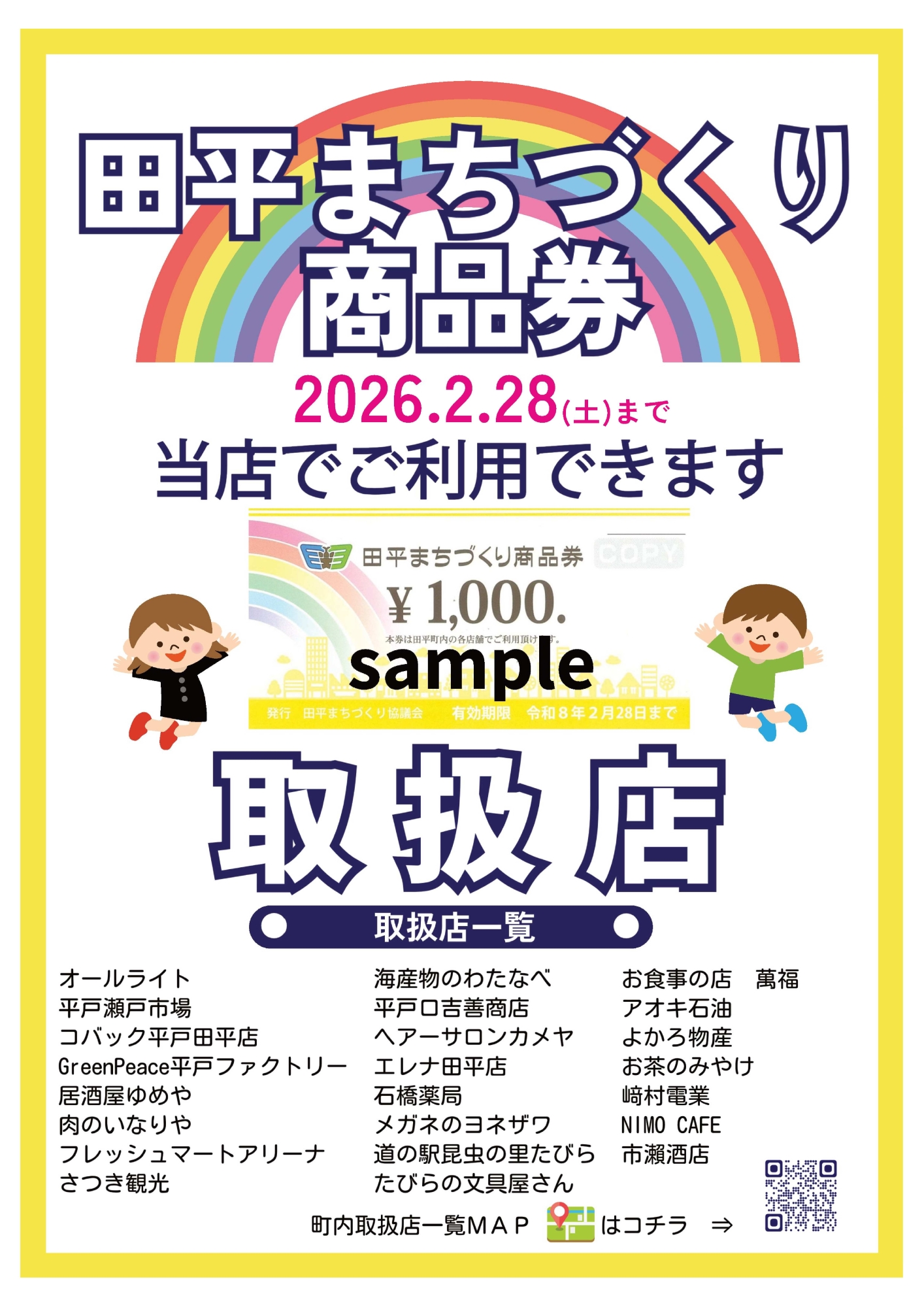 田平まちづくり商品券の取扱店はポスターを目印にご利用ください。