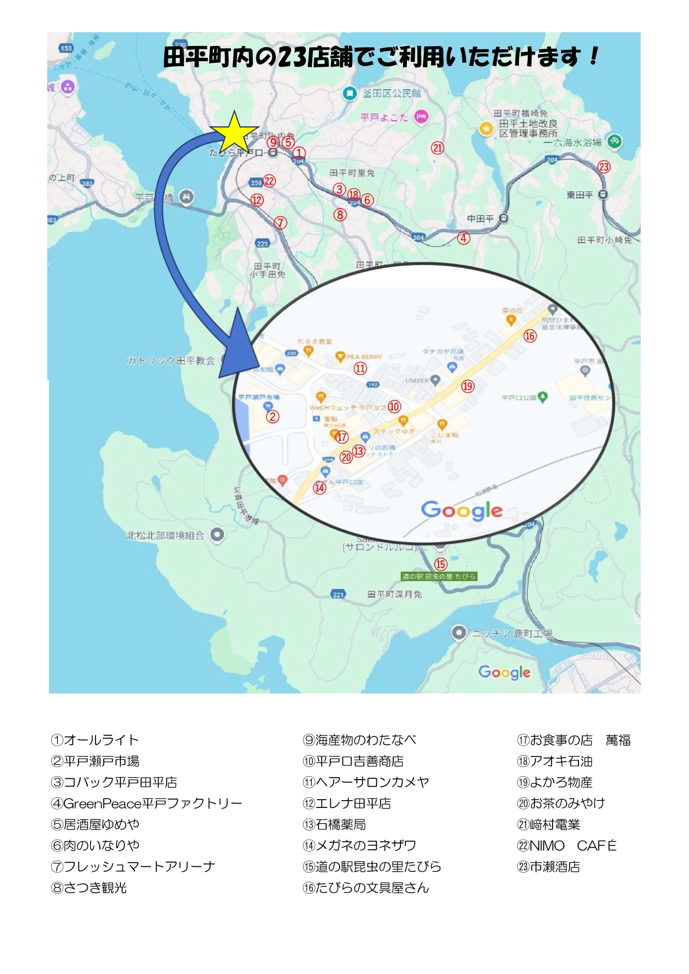 田平まちづくり商品券 - 町内取扱店一覧MAP -